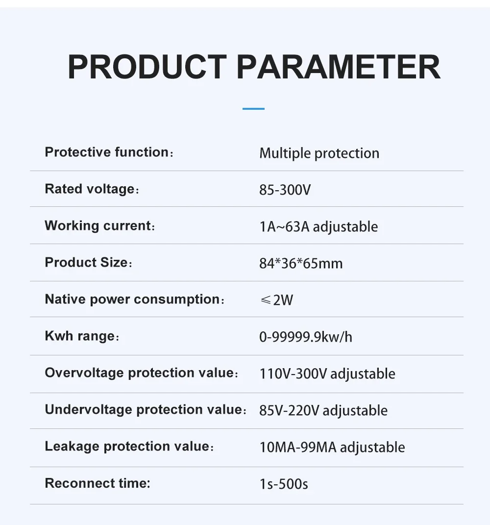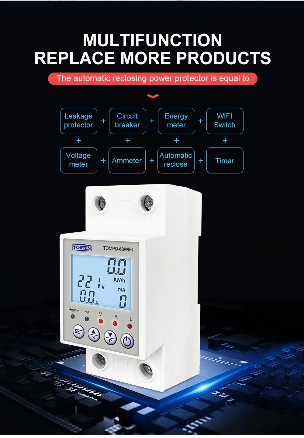 TOMZN TOMPD-63WIFI не только гарантирует надежную защиту от короткого замыкания и перегрузок, но и позволяет вам отслеживать параметры потребления электроэнергии в реальном времени. Настраиваемая задержка включения и гибкие параметры защиты делают это реле идеальным выбором для любого дома или офиса. Убедитесь в его низком энергопотреблении и высокой устойчивости к перенапряжению – ваш идеальный помощник в управлении электричеством рядом с вами!