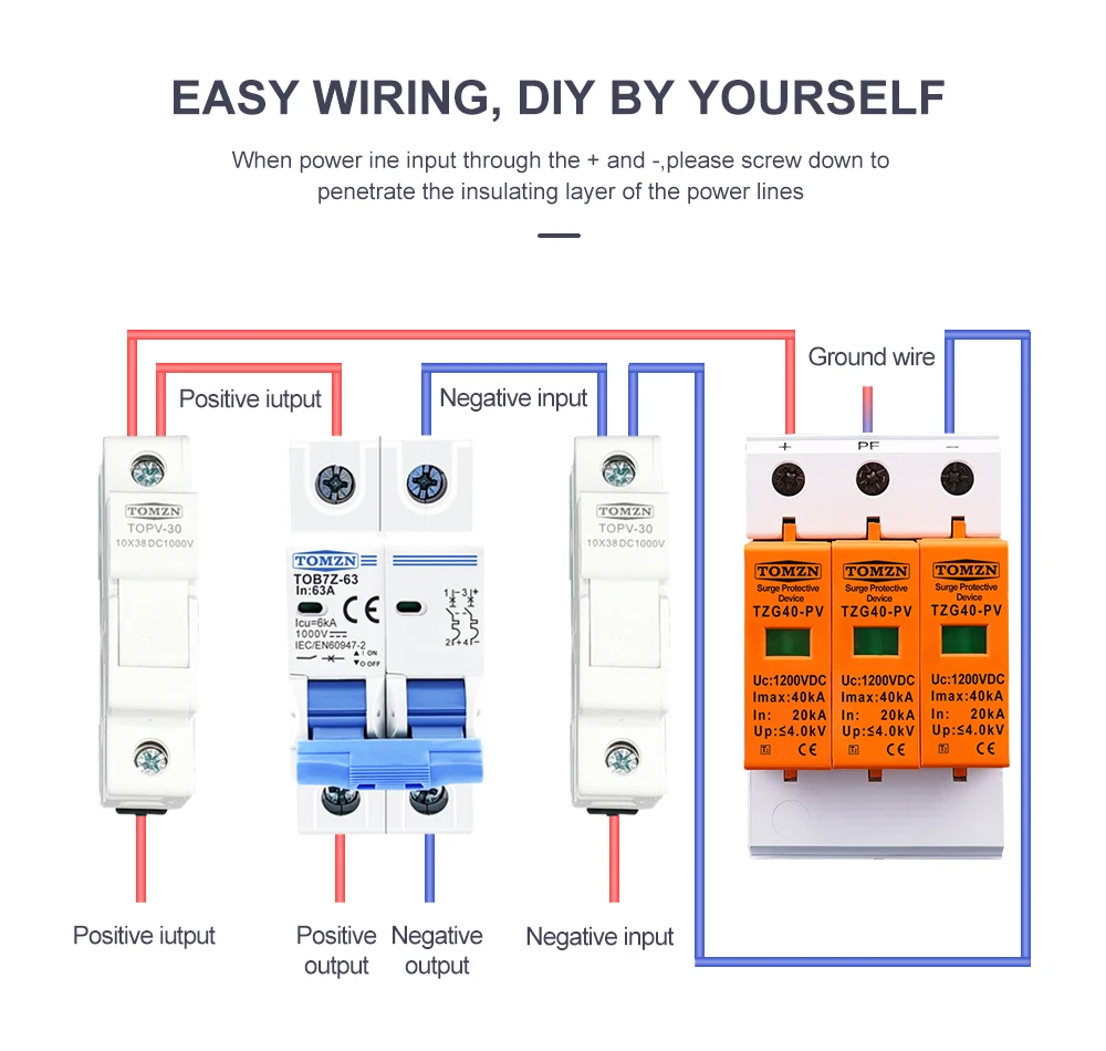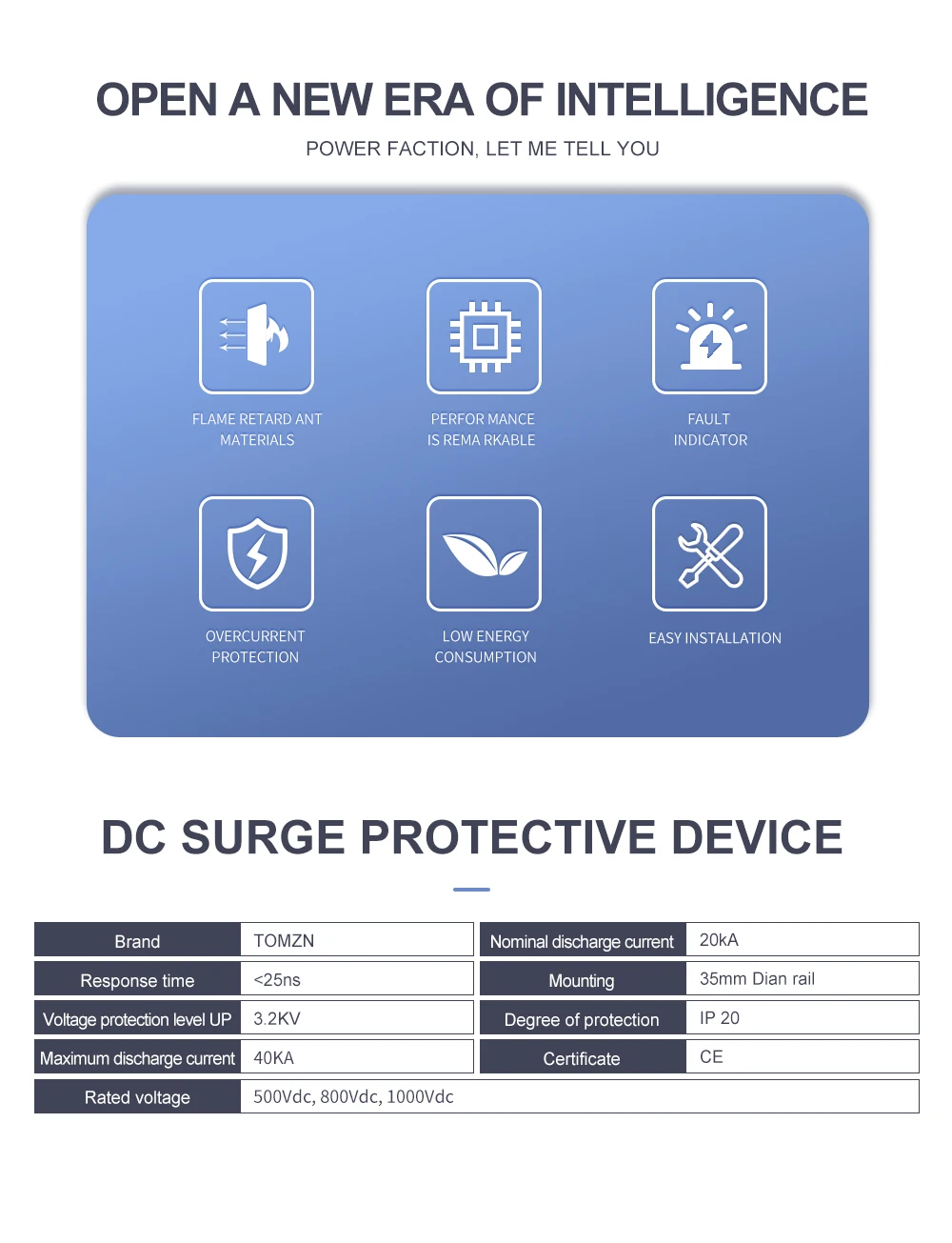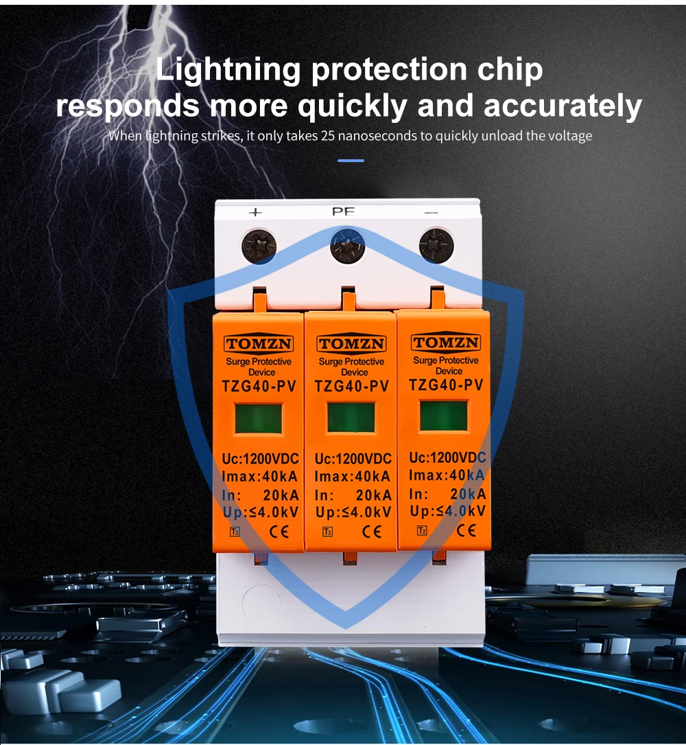As a TOMZN product, this surge protector carries the hallmark of reliability, quality, and performance, promising seamless integration and dependable protection [citation:9]. With a track record of excellence, TOMZN ensures that the TZG40-PV SPD DC 1200V upholds the highest standards of reliability, safeguarding your systems and providing you with a durable and trustworthy solution.